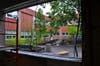Over the summer, construction crews at the MTHS Media Center began dismantling walls, widening doors, and rerouting wiring. The renovation started July 29, and by the time students arrived last Wednesday, workers had already expanded windows, framed doors leading to outdoor reading spaces, installed the base to a performance platform, defined a soaring circulation desk, poured footings for an outdoor deck, and prepared to wire the expansive space to accommodate upgraded technology needs for research.