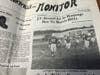 Inside was the November 25, 1969 edition of the MONTVILLE TWP. MONITOR. Unfolded, the back page sports news took prominence, revealing a photo of the MTHS football team with the caption: “Larry Casha No. 40 gains yardage during Parsippany-Hills game.”