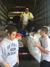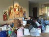 St. Pius X School students and church parishioners collect more than 194 bags of clothing and household items.
