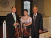 Photo 2 – from left to right: Burchard Tang, violist for The Philadelphia Orchestra, Hirono Oka, violinist for The Philadelphia Orchestra and Pianist Jeffrey Uhlig.