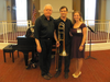 Photo 2 – from left to right: Pianist Jeffrey Uhlig and Nitzan Haroz, Principal Trombonist for The Philadelphia Orchestra with Lauren Coleman, Director of Recreation and Wellness at The Evergreens.