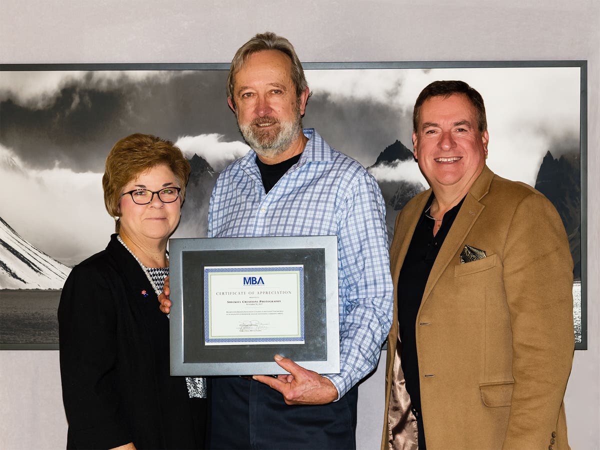 PHOTO--l. to r.: MBA Vice President Kathy Hiltner, Tom Sheckels, MBA President Steven Pazienza