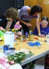 This year, the spring musical included the efforts of students in the freshman/sophomore Life Skills class, taught by special education teacher Kim Warren. The students, to correspond with their vocational training, created silk floral bouquets and arrangements for use in several scenes of the production, as well as fresh flower bouquets for sale at intermission, and assisted in flower sales at the performances. This effort was organized and coordinated by costume designer and president Georgean Wardzinski, and Joan Kindsfather, a parent volunteer, with the assistance of the school’s paraprofessional staff, student volunteers and other volunteers involved with MoorArts.