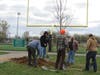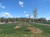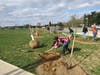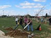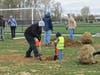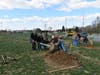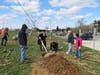 A hundred volunteers planted 75 trees then celebrated with songs and awards.