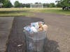Photo 2: Recyclables overflow a trash basket near the Pryor Park soccer fields.