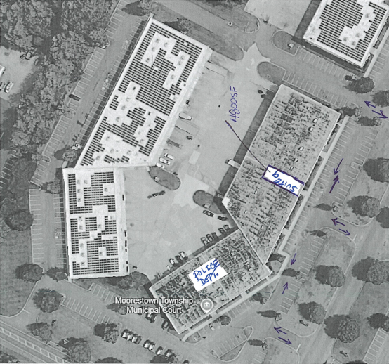 The building is located at 1245 N Church St. — part of a township business-park district. It is currently used by the Moorestown Police Department (Suite 2), the municipal court (Suite 4) and as a lighting manufacturer's headquarters (Suite 12).