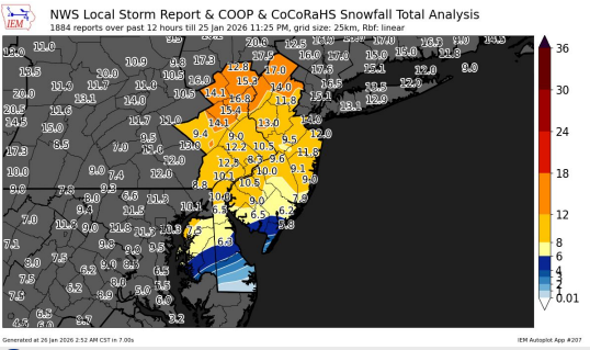 - South Jersey Regional Airport: 9.6 inches (11:20 p.m. Sunday)