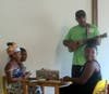 Photo 2: Aylissah Calaf, Birthday girl (with crown) Asiniah Calaf color and listen to music from Michael Berry, a volunteer at Trinity Episcopal Church’s Christmas in July event.