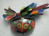 What she creates with these gourds, through soaking, dyeing and waxing, are mask-like sculptures that display hints of African art, Native American design and 1950s robot imagery. They range from minimalist to exuberantly kitschy and are priced from $175-$800.