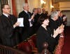 Judge Bozonelis symbolically handed his gavel to friend and fellow judge, Hon. Thomas L. Weisenbeck, who assumes the position of Assignment Judge on Monday.