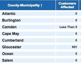 At 11:45 a.m., many counties were still reporting outages. Here were PSEG's totals: