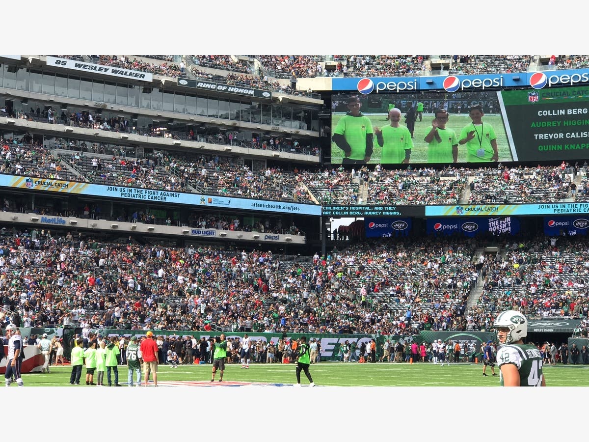Atlantic Health System teamed up with the Jets to fight pediatric cancer. On Sunday, October 15, as part of the NFL and American Cancer Society’s Crucial Catch: Intercept Cancer game, four children who are undergoing or recently underwent cancer treatment at Goryeb Children’s Hospital served as honorary captains during the coin toss against the New England Patriots.