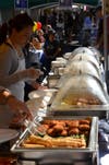Crowds try foods from numerous vendors, mingle with merchants and listen to music.