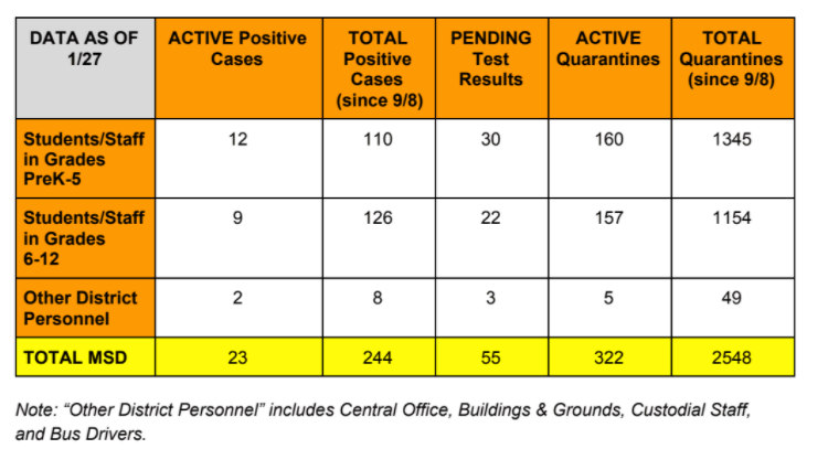 The Morris School District reported the following on its COVID-19 dashboard as of Wednesday: