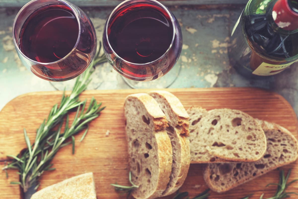 Image: a stock photo of wine and bread, not food from either nominee. Via Shutterstock