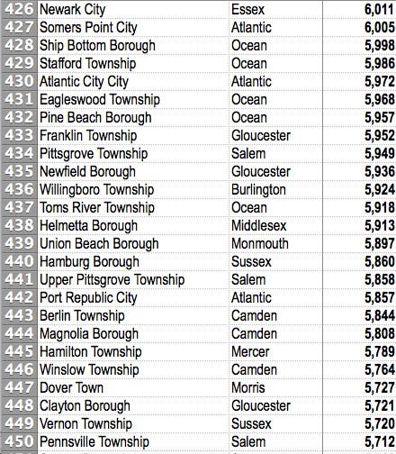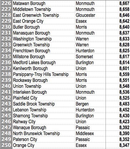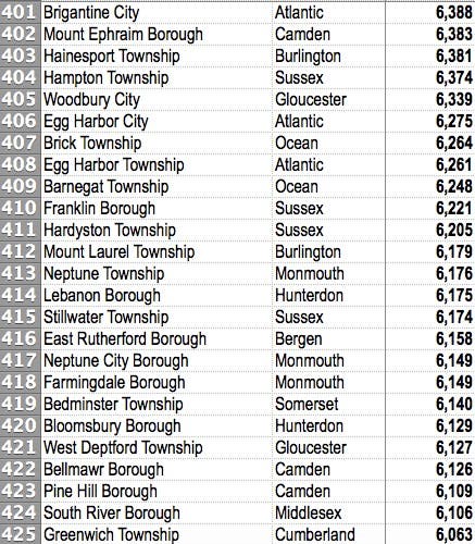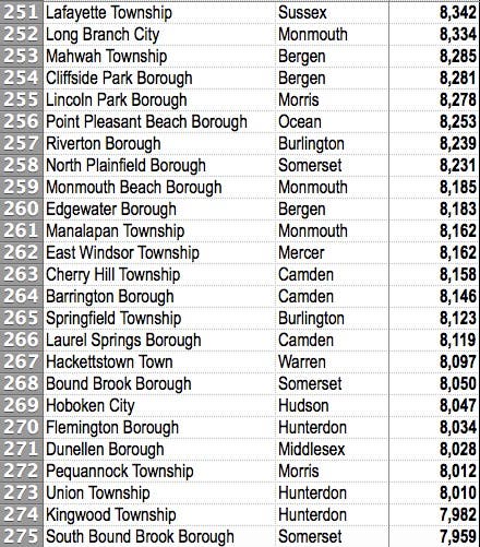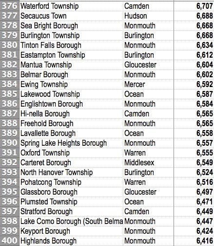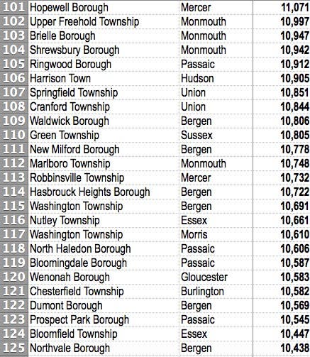 All N.J. communities are ranked highest to lowest. See how expensive it's gotten to live in your town, especially compared to others.