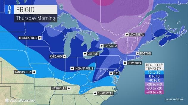 Cities from Philadelphia to coastal Maine along Interstate 95 can expect temperatures to drop into the teens Wednesday night as well, according to AccuWeather. A brisk northwest wind will accompany these mid-winter like temperatures.