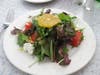 I stuck entirely with the specials menu, starting with a salad and ordering a fried veal cutlet for my entree. My waiter warned me that the down computer system could delay my meal, but that was not the case: My salad arrived promptly, a mix of fresh mesculin greens, sliced tomatoes, goat cheese and a slice of orange tossed in a house vinaigrette. The vinegar came on too strong, but the salad was otherwise enjoyable.