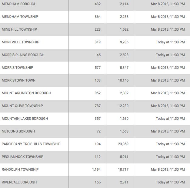 If you don't see your town listed, there are no current JCP&L outages. Times may change based on the severity of Tuesday night's storm.