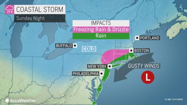 AccuWeather called the storm a "nor'easter," saying its impacts will expand to the coastal Northeast through Monday morning.