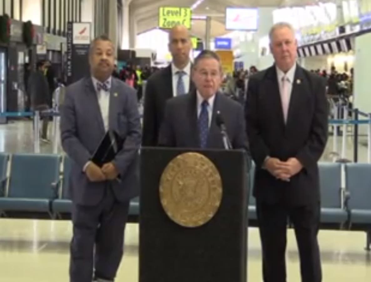 On Tuesday, four high-profile Democratic lawmakers from New Jersey got together for a show of solidarity with the workers at Newark Liberty International Airport. Praising the hard work and community spirit of the affected airport employees, U.S. Senators Robert Menendez and Cory Booker joined with U.S. Representatives Albio Sires and Donald Payne Jr. to blast President Donald Trump and demand an end to the shutdown (see below video).
