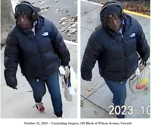Newark police issued an update with surveillance photos of a suspect in the carjacking, noting that the suspect may actually be female (see below).
