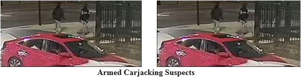 NEWARK, NJ — Newark police continue to search for a pair of men who carjacked two people at gunpoint on Sunday night, authorities said.