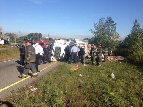 As he was exiting the highway near exit 57, Huson passed a tractor trailer completely on its side along the side of the road. At first glance it appeared to have been placed there out of the way of traffic to be recovered at a later time. But as Huson drove past, he noticed the wheels were still moving and smoke was coming from the vehicle.