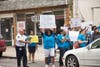 Photo captions: Around 100 parents and charter school supporters protest outside of NJ Assemblywoman Mila Jasey’s Maplewood office on Tuesday.