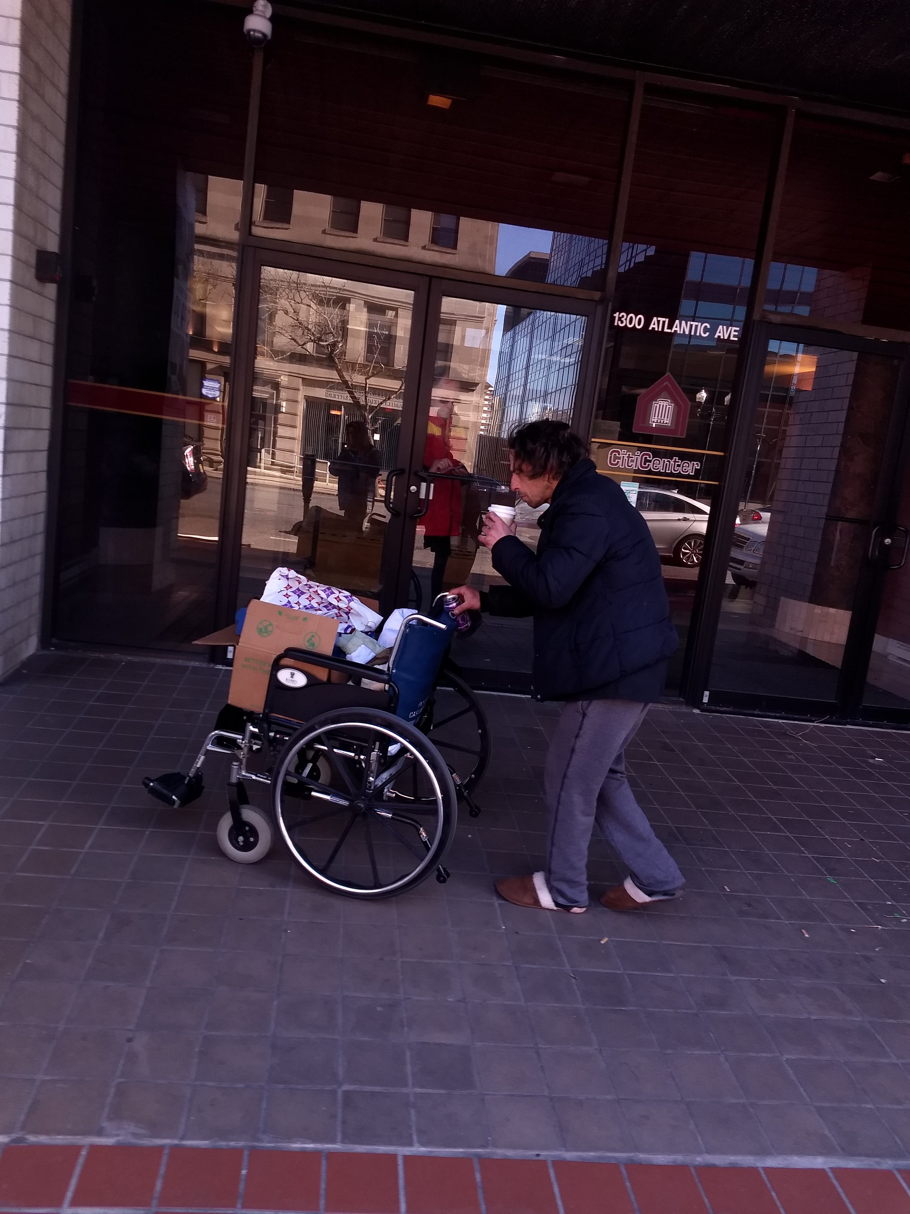 A street worker we thought was handicapped having a lunch break in AC.