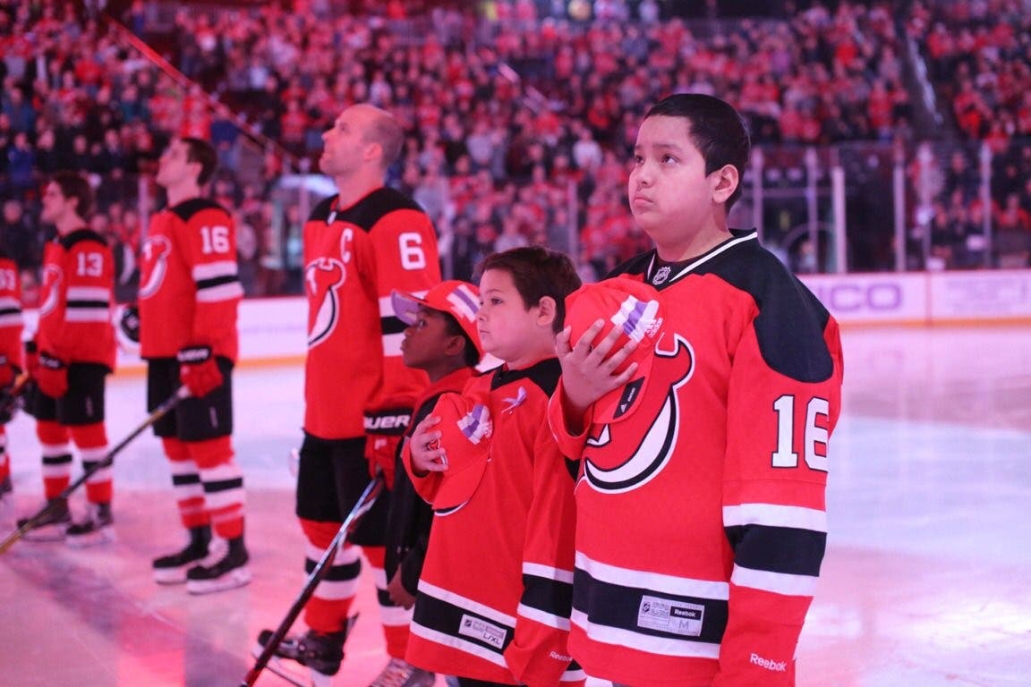 NEWARK, NJ – Participating in the league-wide cancer awareness initiative, the New Jersey Devils brought in 8-year-old cancer survivor Abdiel Collazo as its honorary “Coach of the Day” for Hockey Fights Cancer Night on Friday evening at the Prudential Center before the team’s emotional 3-2 win over the Vancouver Canucks.