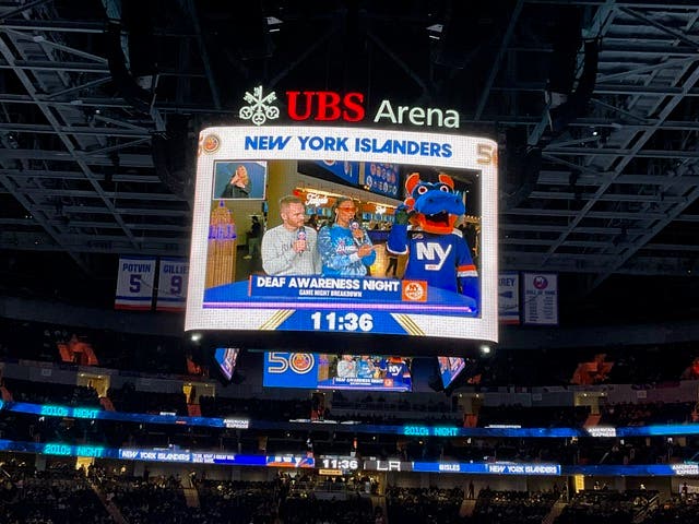 Meanwhile, the New York Islanders held a Deaf Awareness Night at the UBS Arena in Elmont on Feb. 24 – including a mobile captioning QR code scan advertisement on the arena’s giant video scoreboard and ribbon boards.
