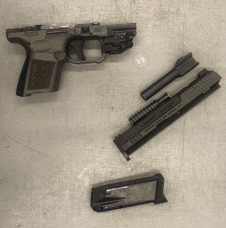 According to the TSA, one of its officers detected the disassembled 9mm handgun inside a Mississippi man’s duffle bag as it went through a checkpoint x-ray machine at Terminal A. The gun frame was jammed in the bottom of a boot below a sock that had been stuffed behind it – apparently to help conceal it.