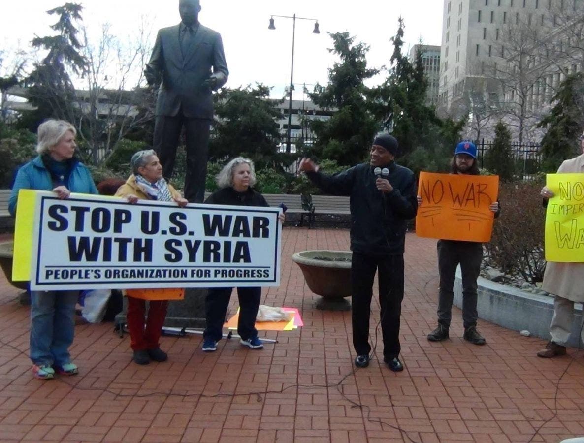 The rally – spearheaded by local grassroots group NJ Against US War on Syria - was set up late Thursday in response to concerns about the possibility of further escalation toward nuclear war, organizers said.