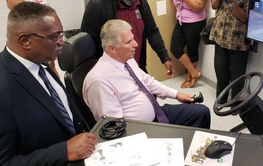 The lab itself includes three networked “simulator stations” that give future construction workers a feel for the tools they might actually encounter on a job site, including a forklift, a hydraulic excavator, a bulldozer and a wheel loader.