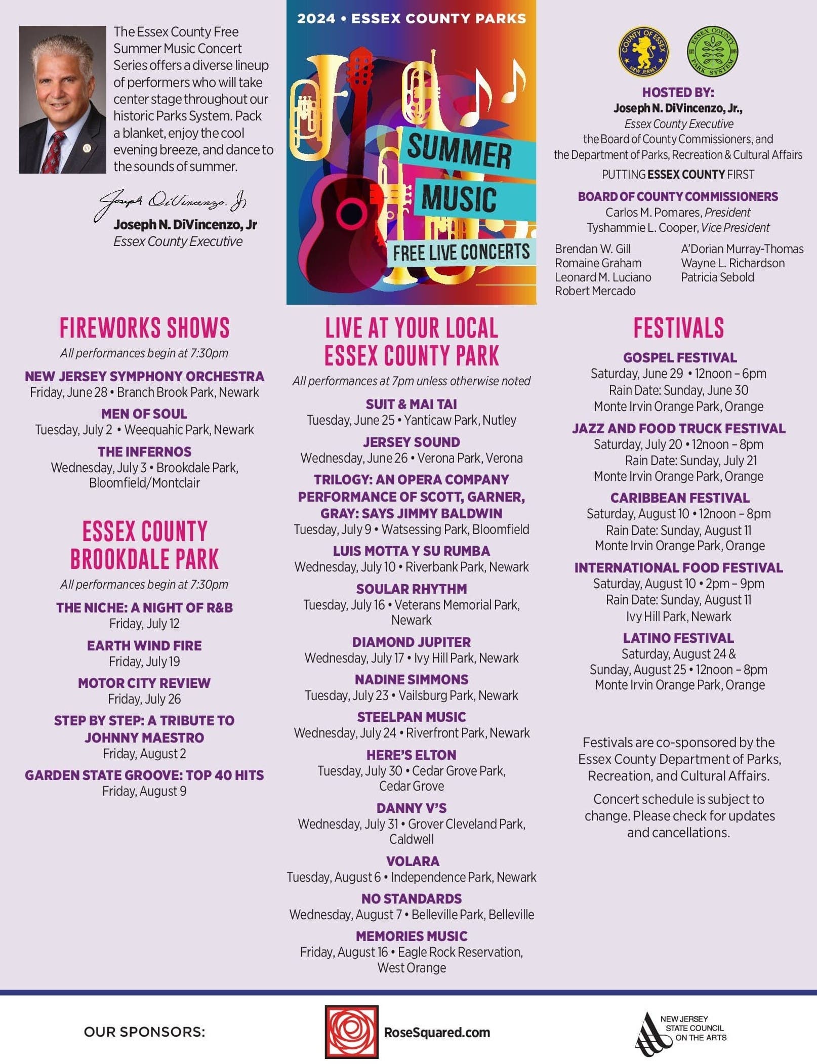 ESSEX COUNTY, NJ — Essex County has announced the 2024 schedule for its popular annual Summer Music Concert Series.