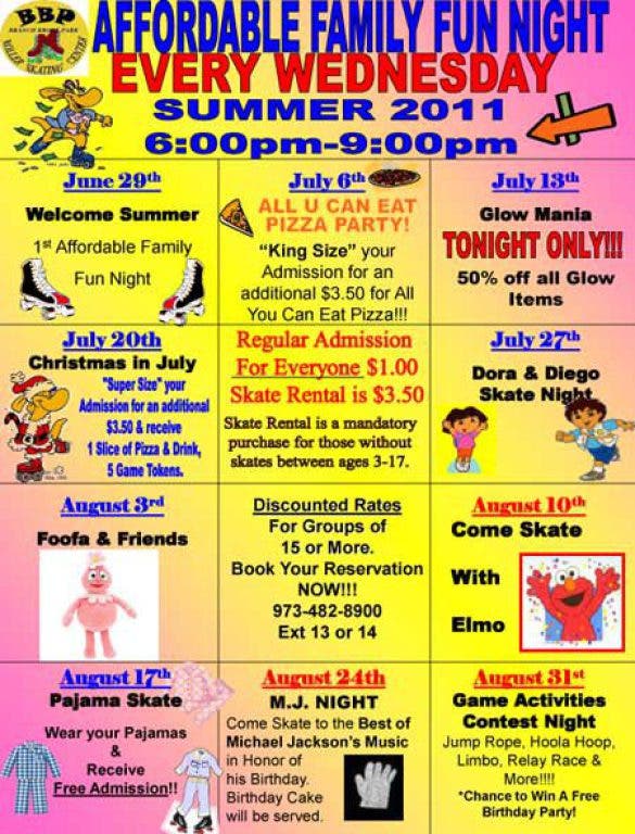 August 17th - Pajama Skate -- Wear your pajamas and get free admission
