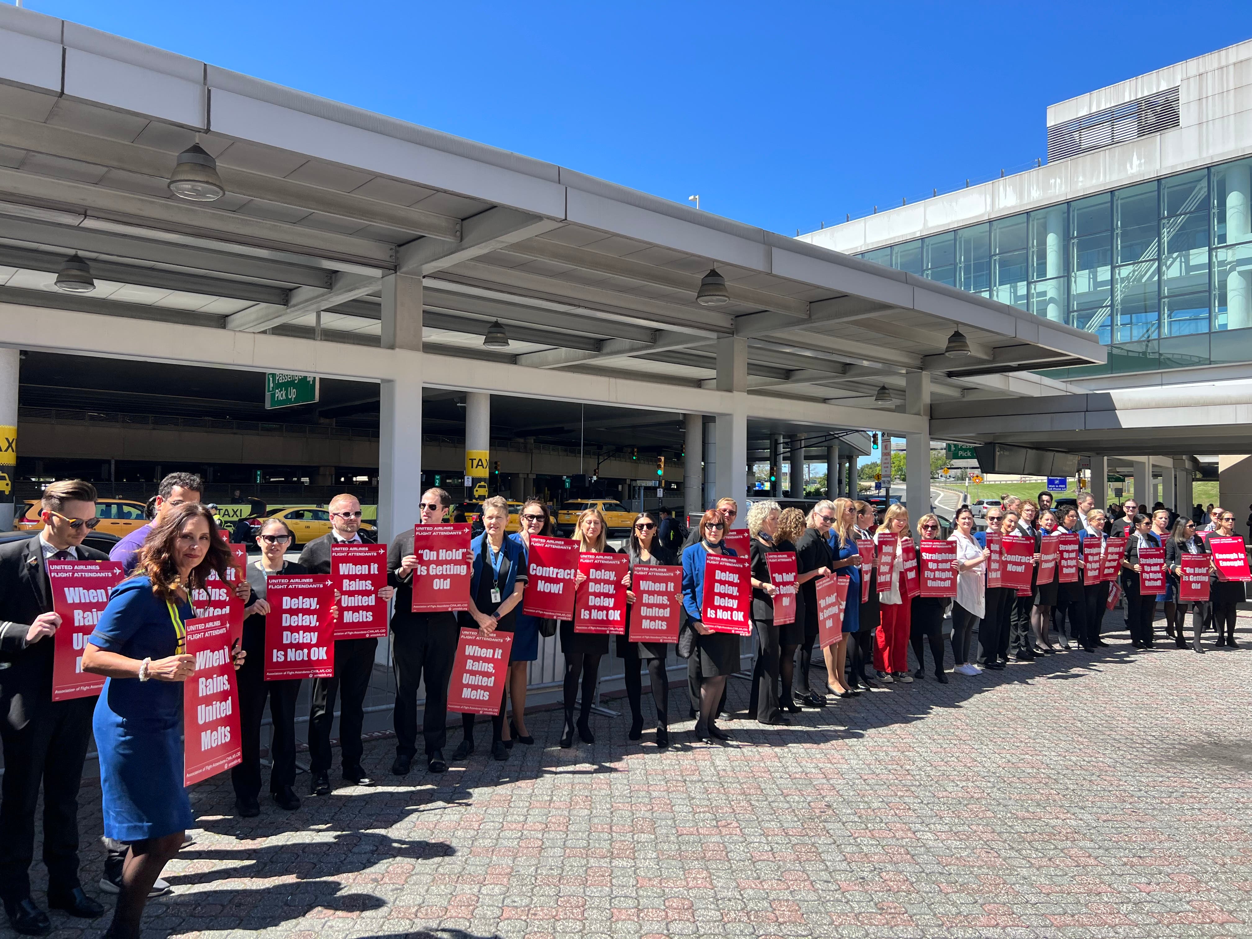Flight Attendants Picket At Newark Airport Ahead Of Holiday Weekend