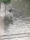Photo 3: A pedestrian walks flooded streets in Hoboken on Sunday.