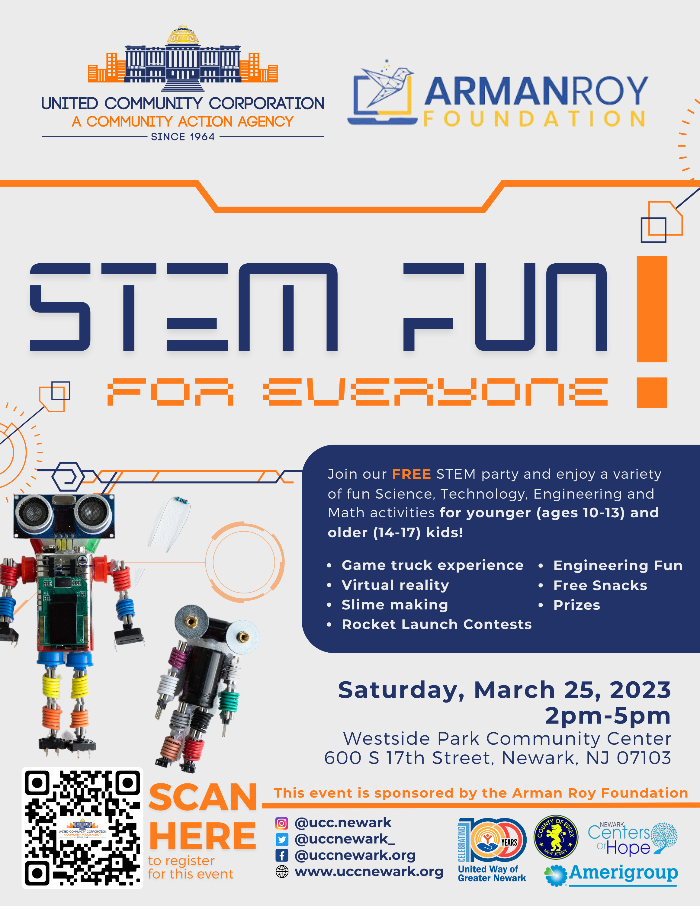 The Arman Roy Foundation is teaming up with United Community Corporation and United Way of Greater Newark to host a STEM Fun For Everyone event on Saturday, March 25 from 2 to 5 p.m. at the West Side Park Community Center in Newark.