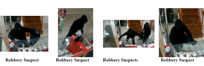 The suspects ranged from 5 feet 5 inches to 5 feet 9 inches. Three had thin builds and the other was heavyset. They were wearing black clothing, ski masks and gloves, police said (see surveillance photos below).