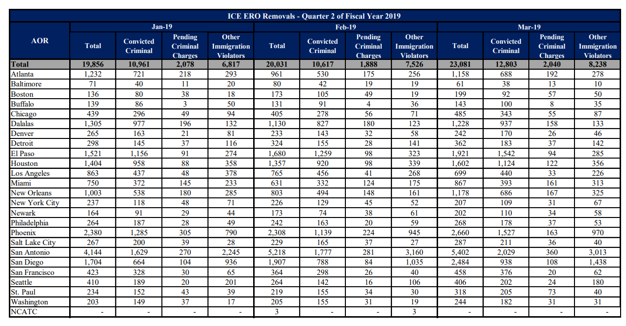 Executive Associate Director Nathalie Asher offered the following statement about the agency’s nationwide statistics for the second quarter of FY 2019: