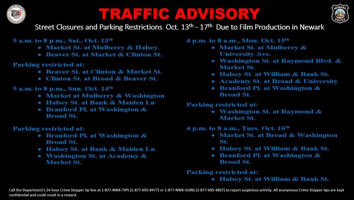 For weeks, Newark city officials have been warning local commuters of traffic changes and closed streets from Saturday, Oct. 13 to Wednesday, Oct. 17 in connection with shooting for an upcoming feature film from Warner Brothers.