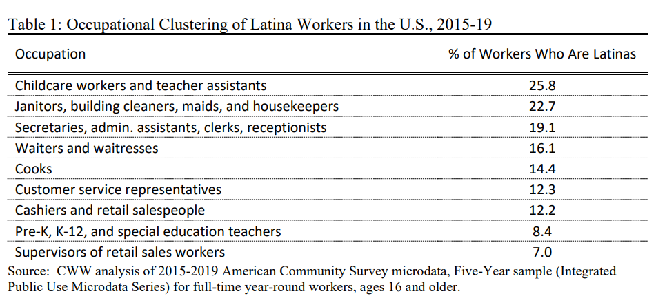 “Juggling a career and caretaking requires flexible job scheduling and support structures,” the CWW said. “Latina workers often lack access to jobs that have flexible scheduling and are unable to afford quality child care.”