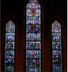 The Te Deum window depicts the Holy Trinity, and angels and figures from Anglican/Episcopal church history, including Francis of Assisi, Julian of Norwich, and Edward Bouverie Pusey, a leader of the Oxford movement to restore Catholic practices to the Anglican Church in England and abroad.