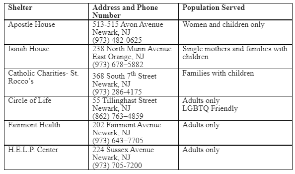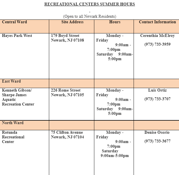 “The city is reminding residents that there are emergency shelters operating during the extreme hot weather that have partnered with the city to provide overnight sheltering for residents with no address. For more information about sheltering services, contact the shelters listed below or the Office of Homeless Services at (973) 877- 9481, Monday through Friday, 8:30 a.m. to 4:30 p.m.”