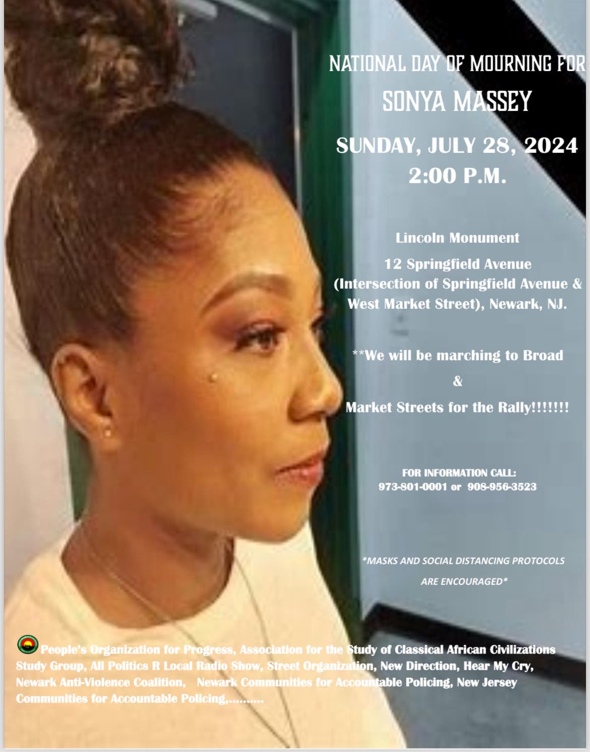 A local demonstration will take place in Massey’s name in Newark on Sunday, July 28. Participants will assemble at 2 p.m. at the Lincoln Monument, 12 Springfield Avenue. The march will continue to Broad and Market streets for the rally.