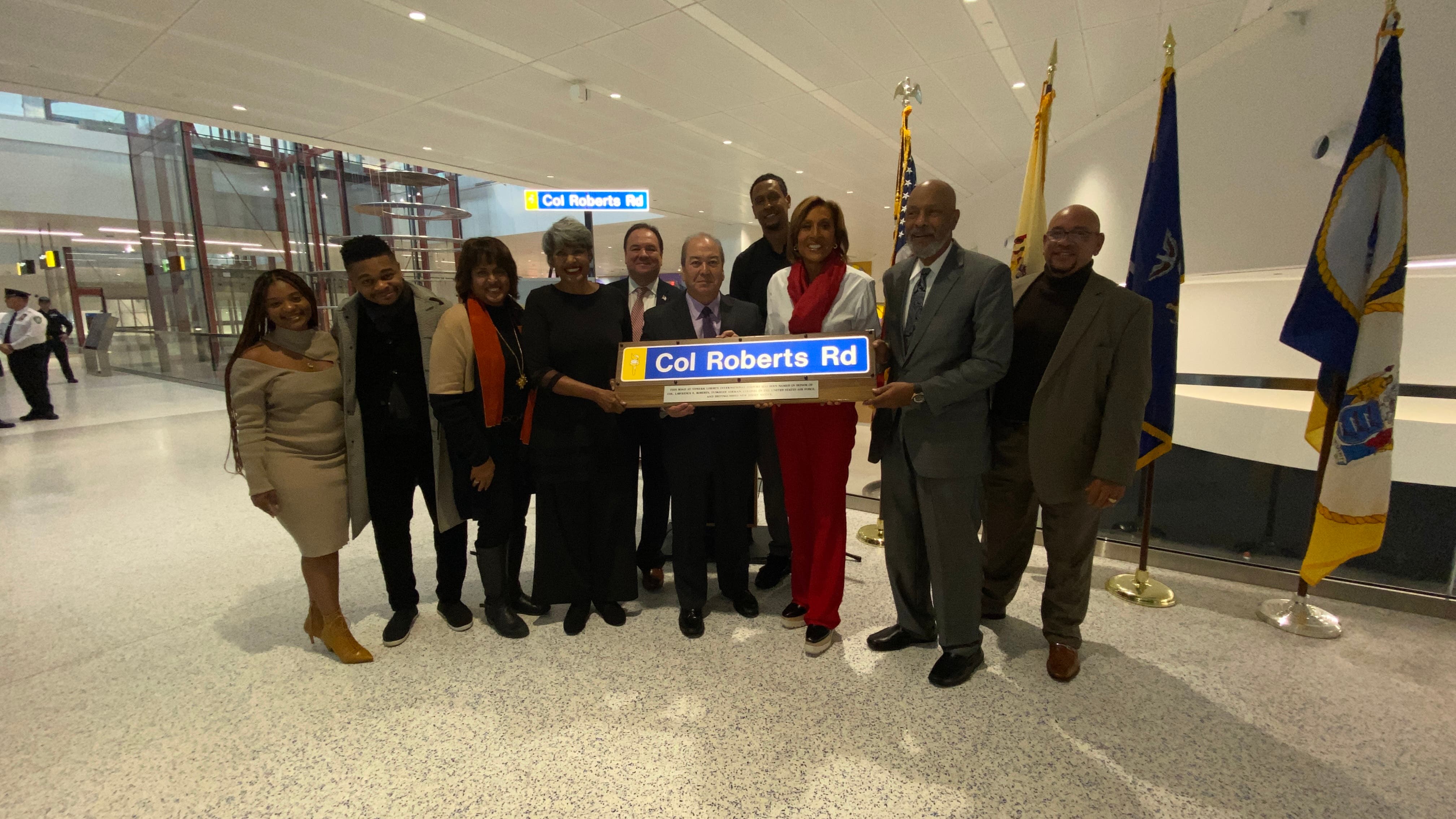 The tribute to Roberts was marked with a ribbon-cutting ceremony featuring a presentation by Port Authority Chair Kevin O’Toole to members of the Roberts family, including his daughter, ABC’s “Good Morning America” anchor Robin Roberts.