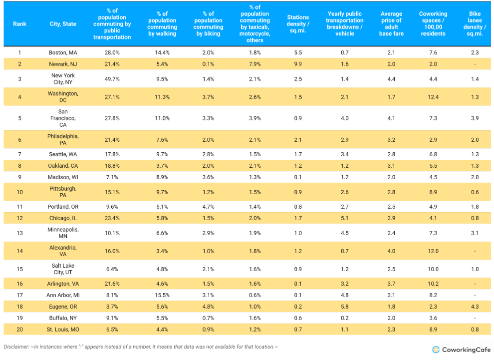 The study analyzed 331 U.S. cities, each with a population of over 100,000. Researchers ranked each city according to several factors, such as the percentage of the population that uses public transportation and those who commute by walking, biking or cabs/motorcycles/other similar vehicles. Researchers also analyzed the density of stations and bike lanes, as well as the average price of the adult fare, among other metrics. Read the full list and see its methodology here.