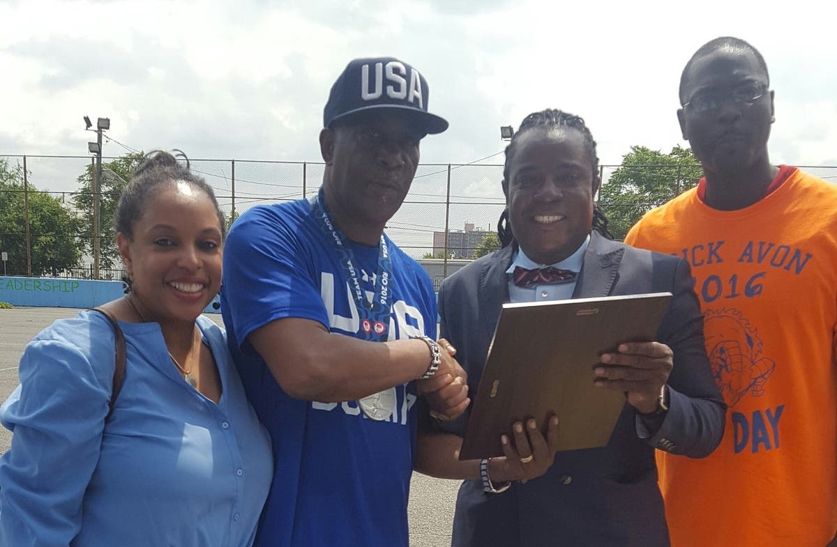 Moses, a Newark native, was the honoree for first-ever Olympic Day 2017 at B.R.I.C.K. Avon Academy. He was presented with a resolution from the office of U.S. Congressman Donald Payne Jr. for his commitment to the community.